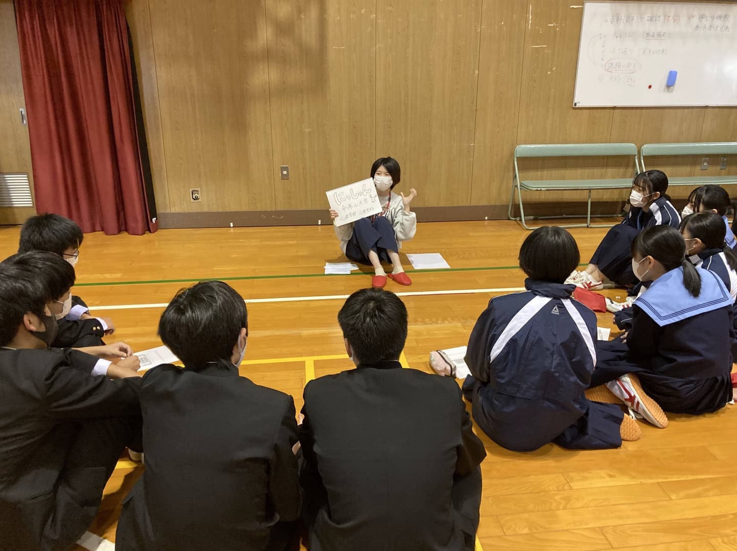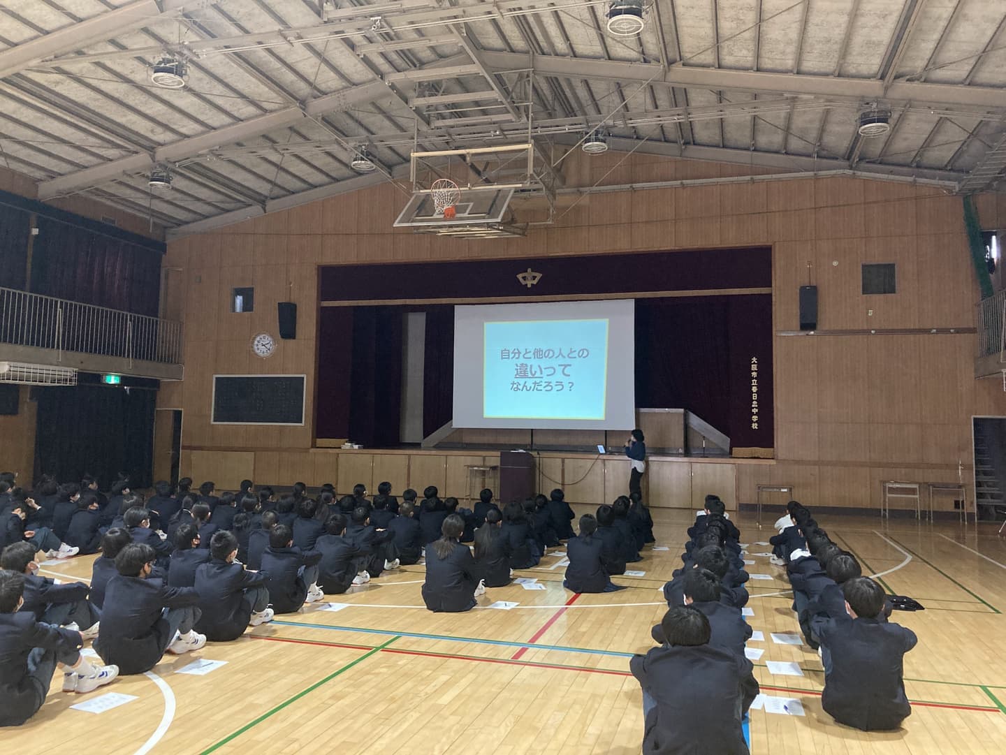 スタッフが訪問し、どんな人にもある発達の凸凹についての具体的な事例やワークショップを行いました。特別な「誰か」の話にするのではなく、中学生自身も含めた社会の中で生活する人について知ることを重視し、違いがあってもそれが当たり前だということ、助け合うことの大切さについて学ぶことが狙いです。